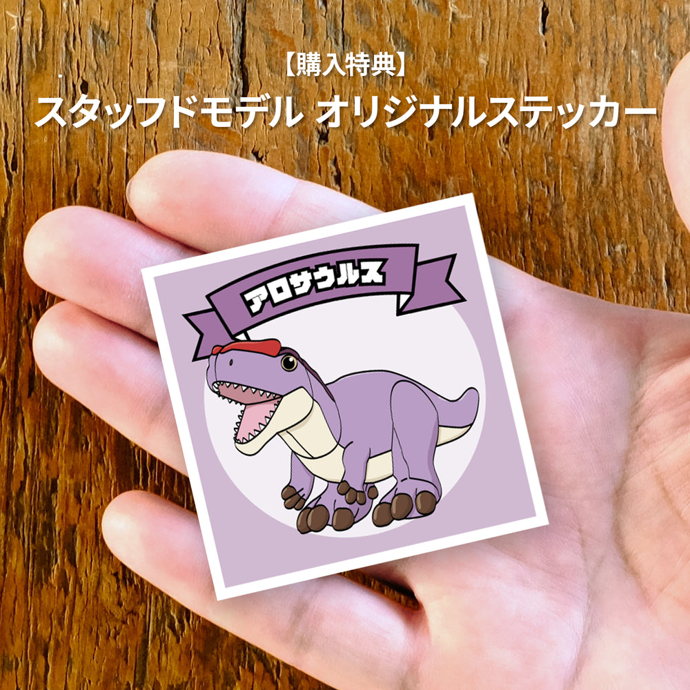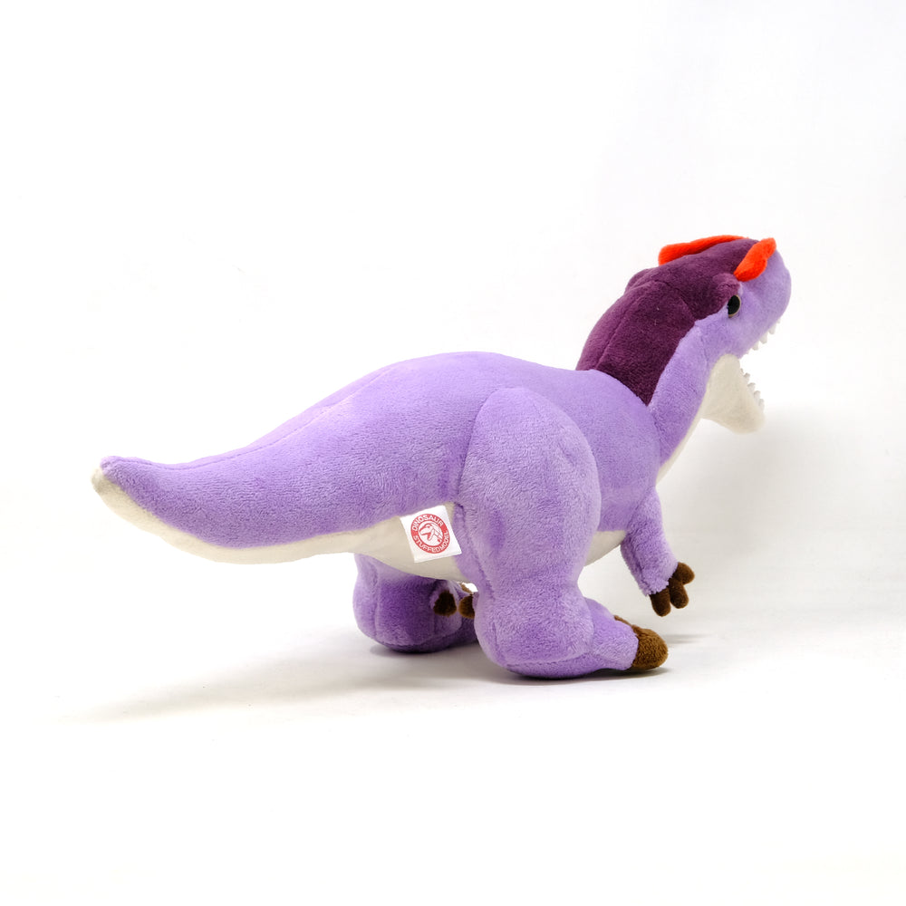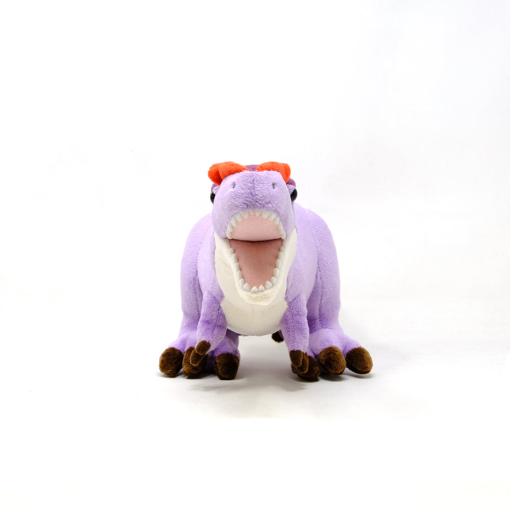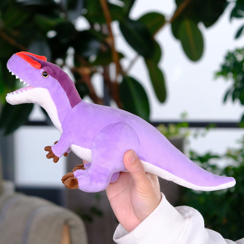 可愛くデフォルメされたフォルムの中に、頭部の突起や細身のシルエットなどの特徴が、ぎゅっとつめこまれたアロサウルスのぬいぐるみです。2足で自立が可能なので、遊んだり飾ったり楽しみ方が広がります。