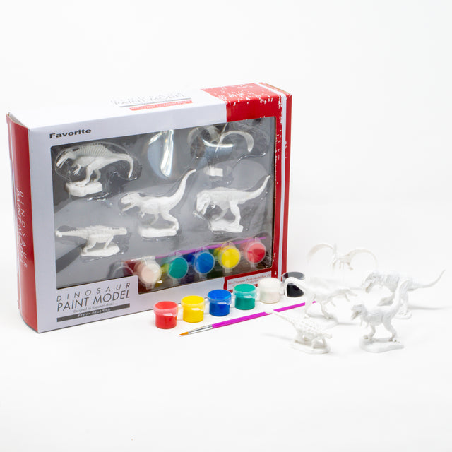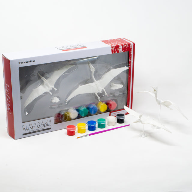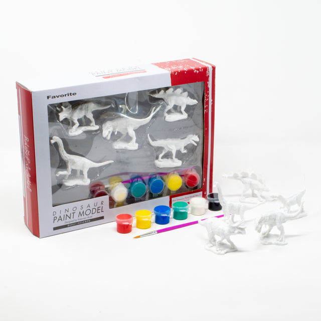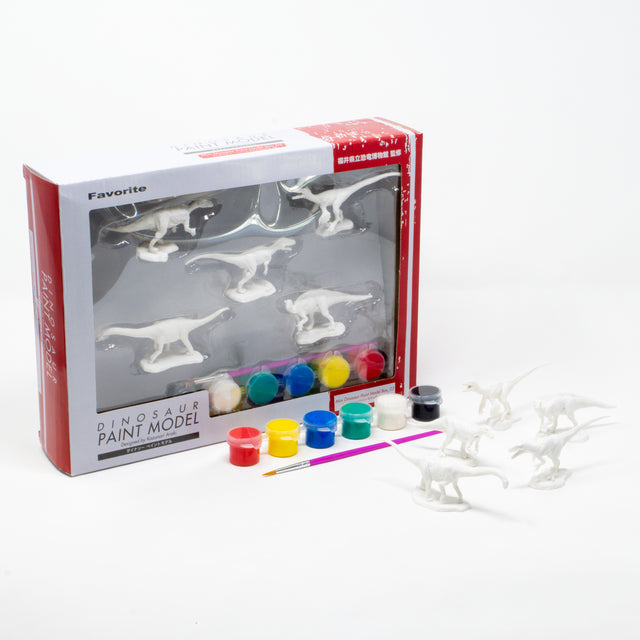 ダイナソーペイントモデルには、筆と 6 色の塗料が付属しています。箱を開けたらすぐにペイントスタート。